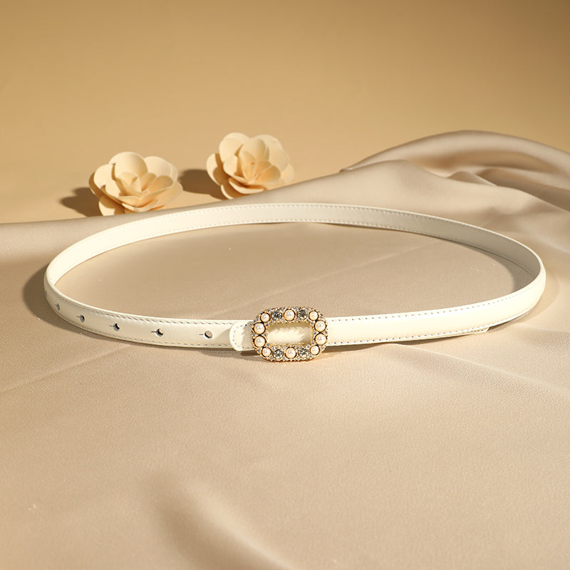 TOYAR Square Rhinestone Pearl Zinc Alloy Buckle Genuine Leather Belt